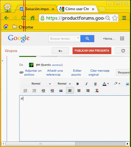 Personalmente es mi opción favorita, ya que paso mucho tiempo respondiendo en los Foros de Ayuda de Google y se me hace necesario compartir con los usuarios enlaces del Centro de Ayuda. En Chrome, si estas redactando un texto, puedes arrastrar la url de otra pestaña hacia el Texto y automáticamente copiara el enlace con el Titulo del enlace. Veamos una imagen de mi amigo Fpardo para que se entienda mejor.