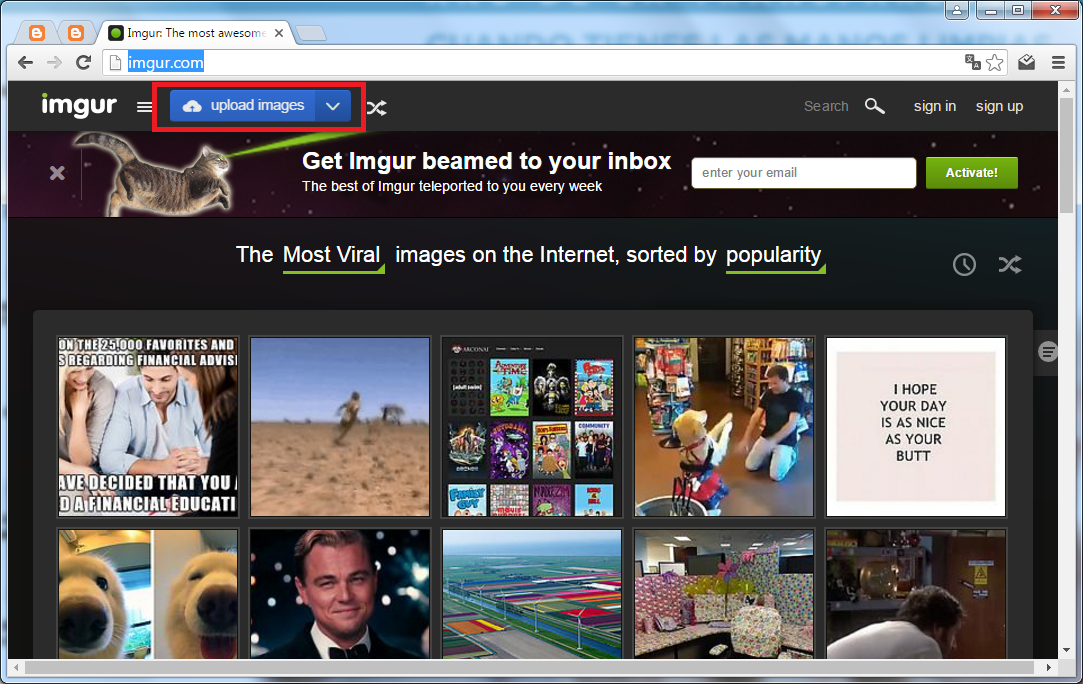 Al ingresar a http://imgur.com/ se mostrara una pantalla como esta: