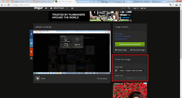 Si por alguna razón después de seguir las indicaciones de Como Insertar una captura de pantalla en los foros de Google. no has podido lograrlo, puedes intentar lo siguiente: